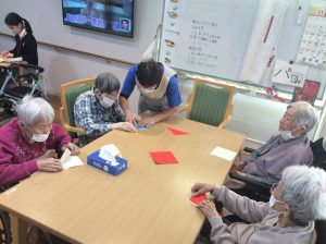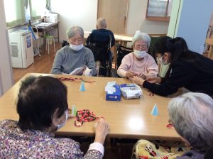 2025.12.05 スマイルイースト 11月活動報告 *11月の活動報告です* 11月のお誕生日の方のご紹介です💖 おめでとうございます! 皆さんお元気です。 タオル体操とボール体操 紙芝居 魚とお金釣り 聖マリア中学生ボランティア 毛糸を巻いてクリスマスツリーを作りました。 干し柿作り 出来上がりが楽しみですね。 歌の時間 今回のプログラムです。 最後まで閲覧頂きありがとうございましたm(__)m 来月もお楽しみに~ サービス付き高齢者住宅スマイルイースト 岐阜市福富天神前340番地 058-201-3025 < 新しい記事を見る 一覧へ戻る 古い記事を見る >