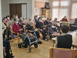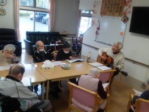 昭和歌謡からみなさん耳なじみのある曲までお琴を弾いていただき、それに合わせて歌をうたったり、上半身を大きく使った運動も行いました🎵
