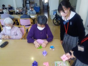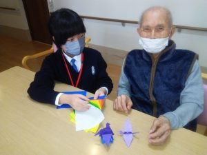 学生のみなさんに教えてもらいながら器用に指先を使ってツルや風船など折りながら、その中で昔を懐かしむ声もお話しつつ、折り紙をしました🎈